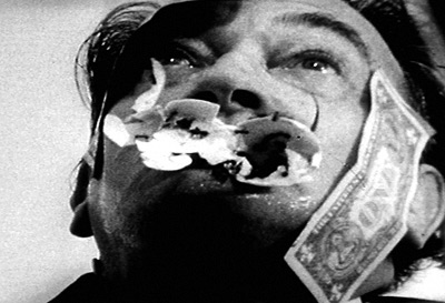 However, even with full appreciation for the skill and artistry with which it was made, watching Vampyr is hardly a thrilling experience; with its emphasis on atmosphere and its artistic conceits, it fails to concern itself with such usual priorities as pacing or continuity, and in spite of the macabre crisis it depicts it is largely lacking in suspense or action, contenting itself instead to create a series of elegiac encapsulations of mood and concept. As it approaches its ending, however, Vampyr suddenly shifts gear and delivers a pair of sequences that transform it from an intellectual exercise into a genuine horror movie. First is an extended set piece in which its protagonist has a premonition of himself lying wide-eyed in a windowed coffin, being prepared for and carried off to burial. Through the use of first-person perspective, Dreyer creates a highly uncomfortable, claustrophobic identification of the audience with the corpse, forcing us to imagine our own death and experience the ominous finality of these moments, as well as conjuring the universal fear of being buried alive. Continuing to capitalize on the latter, we are shortly afterward given a scene in which one of the characters, trapped at the bottom of a storage shaft and surrounded by the cold sterility and inhumanity of ominous industrial machinery, is slowly submerged in a cascade of sifted flour until his desperate cries for help are silenced by death. These sections of the film distill its underlying theme into a direct and palpable form; for Vampyr, at its core, is ultimately a meditation on the inescapable reality of death, the fear of which, as Dreyer rightly understood, is at the base of all our obsessive fascination with the dark mythology of our folklore and fiction. When we cringe at the imagined threat of the undead monsters or unspeakable diseases that haunt our shared nightmares, we are really responding to the shadow of our own mortality; and though an iron spike through the heart may end the vampire’s reign of terror, and an emergence from fog into a sunlit clearing may temporarily provide the comfortable reassurance that all will now be well, we know that staving off these supernatural horrors can only delay the inevitable fate which awaits us all. The power of Vampyr derives from its recognition of that fact; and though much of the film expresses the concept of death through motifs and moods that impress us without involving or exciting us, it blindsides us in its penultimate scenes with these visceral evocations of our most primal fear, rendering hollow its obligatory happy ending and leaving us with an indelible sense of the bleak hopelessness summed up in the familiar words inscribed on the lid of our hero’s hallucinatory coffin: “From dust are you made and to dust you shall return.” It’s an uncomfortable reminder, and one which Vampyr provides more vividly than the vast majority of gruesome splatter-fests that represent the horror film genre of today.