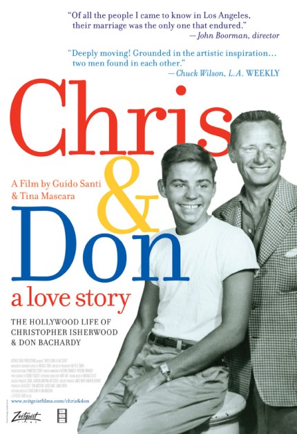 Today’s cinema adventure: Chris and Don: A Love Story, a 2007 documentary detailing the 34-year relationship between acclaimed writer Christopher Isherwood and his life partner, artist Don Bachardy. Practicing documentary filmmaking at its finest, directors Tina Mascara and Guido Santi piece together the remarkable shared life of the couple while also presenting a portrait of each man individually, utilizing footage and narration from surviving partner Bachardy, excerpts from Isherwood’s diaries (read, appropriately enough, by Michael York, who portrayed the author’s alter-ego in the film version of the musical Cabaret, based on Isherwood’s Berlin Stories), interviews with various friends and archivists, and copious home movies and photographs of the couple’s life together. The relationship, which began when the 48-year old British expatriate author met the 18-year old Los Angeles boy on a beach in Santa Monica and defied the odds- and the cynical expectations of the pair’s acquaintances- to endure until Isherwood’s death in 1986, is presented with a restraint and an objective journalistic detachment which preserves the dignity of its subject matter and results in a cumulative emotional wallop, leaving the viewer moved and uplifted by the triumph of an unlikely love. Documentary purists may quibble over the occasional use of re-enactments to depict key moments in the relationship (presented only in brief, out-of-focus snippets without dialogue) and animations derived from Isherwood’s fanciful sketches from his correspondence to his partner, but these touches do nothing to alter or affect the facts presented. Though the film depicts the lives of a gay couple, it is suitable for all audiences; and anyone who watches it is bound to be, as I was, filled with admiration for two people who disregarded social prejudices from every direction and inspired by their success at building a love to last a lifetime.
