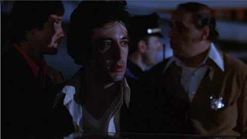 Today’s cinema adventure: Dog Day Afternoon, the 1975 Sidney Lumet feature about a real-life bank heist gone wrong, in which a troubled Vietnam war veteran attempts to obtain the money needed for his gay lover’s sex change surgery and ends up at the center of a hostage situation that turns into a media circus. A prime example of seventies “New Hollywood” cinema, this gripping gem achieved much popularity due to its anti-establishment undertones and the performance of Al Pacino, who was at the height of his rising stardom. Director Lumet, also at the peak of his career, steadily drives the brilliant Frank Pierson screenplay by allowing the story to unfold through the characters, resulting in a slow-but-steady paced film that remains emotionally grounded as it moves through the escalating complications of the plot, building tension by keeping us invested as it moves towards its inexorable conclusion; in addition, by focusing on the immediacy of the human element, Lumet succeeds in creating a microcosmic fable with complex political and social overtones woven into its fabric without ever letting these larger themes overwhelm the immediacy and intimacy of its simple story. The power of the film as a whole is seamlessly connected to the magnificence of Pacino’s embodiment of the likable loser at its center; his sharply honest portrayal allows us to instantly connect with the core of his character as he wavers between gullibility and cynicism, despair and determination, kindness and cruelty- seemingly the entire contrasting myriad of human emotion. It’s hard not to be on his side, no matter how ill-advised his actions may be; we share his giddy thrill when he stirs the crowd with his chants of “Attica!,” and we feel the crushing pressure as he tries to negotiate an acceptable way out of the no-win situation he is in- both in the bank and in his life. Backing him up is a quietly brilliant cast of supporting players, from John Cazale as his slow-witted accomplice and Charles Durning as the police negotiator trying to diffuse the situation, to the ensemble of bank-employees-turned-hostages who convincingly bond with their unwilling captor. Special praise, however, should go to Chris Sarandon, as Pacino’s gender-swapping lover, who delivers his two scenes with a sensitivity and a dignity that provide the bittersweet heart upon which the entire plot hinges. It is worth mentioning, in fact, that the homosexual elements of the film are handled with objectivity and a marked lack of stereotyping- a fact made all the more remarkable by the era in which it was made, which helps to make it stand as strong today as it did upon its first release nearly forty years ago. (As a side note, it is interesting to know that the film’s real-life inspiration, John Wojtowicz, used his proceeds from the sale of his story to finally fund his lover’s sex change; so in a roundabout way, his scheme ended up being successful after all). All in all, Dog Day Afternoon is one of those classics that define an era, a representative work from a time when American cinema blended realism with art to create a kind of visual poetry, a document testifying to the character of our culture and capturing the essence of our concerns. Not only that, it is a reminder of a time when Hollywood gave us stories that grew out of the people in them instead of relying on gimmicky, formulaic plots with the people grafted in- and though I’m not one to bemoan the passing of the “good old days,” it’s certain that today filmmaking establishment would be completely unable- or at least unwilling- to create a film with the kind of simple, non-CG-powered thrills provided here. Of course, you don’t need all these justifications for checking it out. The only reason you need is the best reason of all: it’s a damn good movie.
