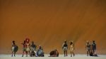 I don’t want to make it sound, however, like A Mighty Wind is one of those feel-good comedies that wins our attention with laughs and then degenerates into pseudo-heartfelt preciousness. Guest and his compatriots ensure that they never even come close to that boundary, simply by virtue of their entirely honest approach to the characters. There are no scenes of forced emotional climax; the epiphanies take place between the lines, without comment, and become part of the landscape on which further developments are built. Nor does the film present some false fable of life-changing redemption, comic or otherwise. The final scenes make it clear that whatever may have happened during the adventure of the concert, these people will continue to lead a life on the fringes, still seeking- though perhaps with renewed vigor- to grab another moment in the sun by whatever means necessary, no matter how ridiculous; and we love them all the more for their determination to go on trying, even though we may giggle at the absurdity of their attempts or feel a bit embarrassed for them over the indignities to which they stoop in their quest. Still, whereas in previous outings we only shake our heads and dismiss these further shenanigans with bemusement, in A Mighty Wind, thanks to the genuinely sympathetic insight we have gained into at least some of these loony losers, there is a pang of wistful regret added to the mix that creates a distinctive sense of melancholy. It’s not a bad thing, in my view, for even if the movie lacks the outright hilarity of Guffman or Best in Show, it stays with us in a way those previous gems do not, and the stronger emotional connection it makes leaves us feeling all the more satisfied.