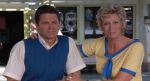Whether or not you respond to the way Guest’s film strives for more legitimacy through its forays into tenderness, it is undeniable that the work of the ensemble has here reached a new level of brilliance. Each character, no matter how small, is invested with a sense of complete life, contributing indispensably to the overall picture presented by the film. The front lines are manned by the performers taking on the personae of the musicians. Michael McKean, Harry Shearer and Guest himself are The Folksmen, giving the workmanlike trio an unrelenting aura of positivity that may occasionally be strained but is never forced, making them a sort of flip side to their trio of heavy metal rockers in Spinal Tap; foremost amongst the New Main Street Singers are John Michael Higgins and Jane Lynch as the headlining Bohners, who give the pair a comically unsettling aura of sexual ambiguity and deep dysfunction under their slick-and-shiny patina of professional cuteness, with Parker Posey adding her own touch as a former-delinquent-turned-group-member who exudes the vacuous zealotry of a brainwashed teenage cultist; and giving the film its heart- while still providing mordant commentary through their keenly-observed performances- are the incomparable Eugene Levy and Catherine O’Hara, as Mitch and Mickey, respectively. These latter two take their improv-built characters to a depth and fullness that rivals those in any conventional screenplay, layering them with a kind of subtext and dimension that makes us forget these are not real people on the screen. Levy brilliantly exudes the aura of the intense, visionary and antisocial poet, seething with all the charisma that entails, until he opens his mouth to reveal his true nature as an inarticulate, fatuous burnout whose emotional and social maturity seems to have ceased developing circa 1965. It is O’Hara, though, who steals the show with her remarkable portrayal of Mickey, the sensible and pragmatic housewife who finds the dreams of her youth- and her passions for the love of her life- are reawakened by the chance to relive her gone-but-not-forgotten glory days. She alone, of all these misfits, defies ridicule; she is foolish, yes, and caught up in an illusion as much as any of the others, but she is also eminently likable in her blend of down-to-earth simplicity and mature sophistication, and we find ourselves hoping alongside her that the promise of her past can at last come triumphantly to fruition. It’s a forgone conclusion that it won’t, at least not in any lasting way, but O’Hara’s complete and sincere commitment to the role allows us to fool ourselves just as willingly as Mickey does, and her inevitable disillusionment is ultimately perhaps more heartbreaking for us than it is for her. It’s a transcendent piece of acting, by any standards, and together with her old SCTV cohort Levy, she makes A Mighty Wind as poignant a portrait of unrequited longing as any “legitimate” Hollywood romance.