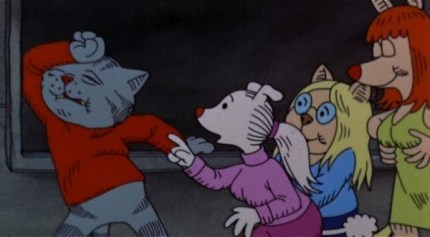 Today’s cinema adventure- Ralph Bakshi’s 1972 feature debut, his adaptation of R. Crumb’s underground comic, Fritz the Cat.  The first animated film to earn an “X” rating, it met with a lot of resistance and outrage from the mainstream, and Crumb hated it, disowned it, and tried to get his name taken off the credits- but it ended up being the most financially successful independent animated feature of all time.  Written and directed by Bakshi, the film follows Fritz as he takes a personal odyssey from a life of “hanging out” and looking for a good time through a drug-inspired pursuit of revolution- with plenty of shockingly permissive bad behavior along the way.  Voiced by Skip Hinnant (known for his work as part of the ensemble on the classic educational show, The Electric Company), Fritz is hardly a typical cartoon hero: far from cute, barely likeable, and nobody’s idea of a role model, he indulges in one ill-advised misadventure after another, motivated by selfish hedonism even when he is ostensibly acting for what he views as the greater good.  He serves as a sort of counter-cultural Candide, a naïve fool who fancies himself a sophisticate, and as such is at the mercy of a world more corrupt and complex than he imagines; in short, he is the kind of phony that the truly hip despise, and his journey of self-discovery in this worst-of-all-possible-worlds is a vehicle to expose social and political hypocrisy from every source, including (and especially) from our hero himself.  This ambitious agenda may have been beyond the scope of Crumb’s original work (he certainly thought is was), but for Bakshi, it was important for the film to make a statement, which it most certainly does- in between scenes of anthropomorphic animals having sex and taking drugs, that is.  Not that his intention was to shock: geared towards a drug-friendly youth culture, loaded with tons of juvenile sexual, political and racial humor, and mercilessly critical of both the radical left and the extremist right, the film is clearly aimed at an audience who shares his uncensored sensibilities.  At the time of its release, it was one of those films that generated protest and controversy from people who more than likely never saw it, and was cheerfully received by a target audience hungry for the kind of frank, turned-on content it offered.  Forty years later, most of its shock value and its topicality are long gone (one can see comparable content on any given episode of Family Guy today) and across the gap in time much of the film’s anarchic zeitgeist seems more than a little tiresome- as I suspect, to the more mature viewer, it did even then.  Still, as a piece of history, it is fascinating to watch: the animation, though primitive and almost quaint to modern eyes, was innovative and ground-breaking at the time; it presented adult subject matter and content never before seen in animation and completely changed the industry, breaking the stereotype of cartoons being only for children; and it vividly captures a particular social strata of 1960’s culture that is often ignored by popular memory.  I won’t say that you’ll enjoy it, but if you’re intrigued by looking through a window to a bygone era- and you’re open-minded and adventurous- you’ll be glad you watched it.