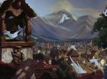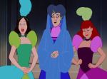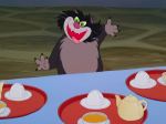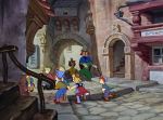 It’s pointless, however, to speculate on what the movie might have been like, and in any case, the true flaw here lies in a screenplay- authored by both directors alongside Steve Purcell and Irene Mecchi- which takes pains to present as softened, politically correct a portrait of medieval life as possible.  Not only are we given a highly contemporized version of family dynamics and an incomplete picture of the ironclad mandate to maintain social tradition, we are presented with a sanitized picture of the realities of the era; battle and warfare are just another comical aspect of the rambunctious male personality, with little hint of their horrific consequences, and the standard archetypal figures of myth and legend are repurposed through the prism of modern perspective.  There are no villains here- the stern parents are merely a little old-fashioned and need only a magical nudge to come around to a more permissive attitude, and even the witch is, more or less, a benevolent old soul.  The closest thing to an evil character is Mor’du, the demonic bear who is more an agent of dumb, blind chaos than an adversarial personality, and even he, ultimately, proves merely to be a misunderstood and unfortunate victim of circumstance- even if it is a circumstance of his own misguided creation.  More disappointing than this lack of a clear antagonist, though, is the story’s deflection of its central conflict into a cute-and-cuddly adventure quest in which mother and daughter work through their differences during their joint effort to solve a secondary problem. Of course, it’s all metaphor, but even so, it contains the suggestion that, once the women have things worked out between themselves, the opinions of the king or his lords will be of little consequence- a decidedly feminist undercurrent, when you think about it, which also has the somewhat dubious implication that it was the women themselves who perpetuated the social assignation of gender roles and the menfolk just went along with it.