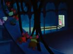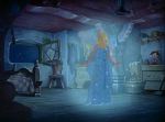 None of those later criticisms apply, however, to Cinderella; it’s a fresh and heartfelt piece of entertainment, and whatever subliminal social agenda might be read into it by progressive modern thinkers, it transcends such retro-fitted concerns with its imaginative approach to a timeless story.  Sweet without being sugar-coated, funny without undermining its deeper themes, and stylish without being shallow, it is a fine representative of Disney at its magical best.  It goes without saying that the animation is stunningly executed; in their quest to infuse the film with a high level of reality, the animators turned once more to their technique of utilizing live action footage as a guide, filming a heavy percentage of the movie with real costumed actors and models in order to give themselves a reference from which to capture the illusion of real movement and expression.  This was not accomplished through rotoscoping- the actual frame-by-frame tracing of live footage- but by free-hand drawing to recreate the filmed sequences, a painstaking process, but one which affords a considerable amount of leeway for artistic interpretation.  In this way, the Disney artists seamlessly blend the realistic style of their human characters with the more overtly cartoonish animals, bridging the two worlds with the intermediate characterization of such comic figures as the King and the Stepsisters.  It’s a fully realized world, enhanced further by the magnificent work of the background artists and the conceptual designers.  I am not one to belittle the advances in technology which have given us the remarkable computer-generated wonders seen in today’s movie houses, but when confronted with the sheer beauty of a film like Cinderella, made all the more dazzling by the intangible influence of the direct human touch, it is difficult not to lament the all-but-lost art of hand-drawn animation.