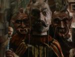 A dark and moralistic story like this one, born of the same dour Germanic heritage that yielded the Grimm fairy tales and other such cautionary parables, could easily be translated to the screen laden with the ponderously heavy trappings of deep tradition and humorless Puritanism; likewise, given the fact that this legend has provided the inspiration for countless adaptations and re-inventions (from Shakespeare’s Macbeth to Brian DePalma’s The Phantom of the Paradise), the familiarity of its basic plot and its themes make it challenging, to say the least, for any artist attempting a new version to find a fresh approach that might prevent predictability and redundancy from undermining the proceedings- and the audience’s interest in the outcome.  In Švankmajer’s hands, however, the entire well-known saga is transformed into an audaciously non-traditional package of surprises, each one as delightful as it is disturbing, appropriately dark in tone but laced throughout with macabre, tongue-in-cheek humor, and loaded with the peculiar blend of the cinematic and the theatrical that gives this director a reputation for visual magic that is unlike the work of any other.  A self-proclaimed surrealist, Švankmajer creates a movie that captures the peculiar flow of nonsensical logic one follows in a dream, making the experience of watching Faust feel thoroughly like a visit to the realm of the unconscious; he tells the story clearly and succinctly, but he does it through a deeply symbolic progression of seeming non-sequiturs, building a mass of perplexing puzzle pieces that fall seamlessly into place as the narrative resolves itself.  By transposing the story deeply into a hallucinogenic reality in which rules of plausibility and common sense no longer apply, the director not only allows himself free use of arcane and metaphoric artistic conceits, he manages to frame his oft-told tale in such a way that every development seems completely new and unexpected, giving us the opportunity to discover its hidden meanings and significant themes by discovering them from an unfamiliar perspective.