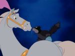 Aside from these signposts of its place in the timeline of cultural history, Cinderella also offers a look at the state of its art form at the time.  Despite Warner’s’ dominance in the realm of popular cartoons, Disney was still the undisputed master of the genre; nobody else could do the things they were doing, and their drive to continually advance the art was still strong, perhaps even more so after years of being held back by the war.  Even so, the creative juices flowing through Cinderella seem flavored less by the hunger of young visionaries than by the confidence of mature artists; there is an obvious delight in their work here, a feeling of seasoned professionalism taking enjoyment in showing off a hard-earned mastery.  There is also a softening in tone, a gentleness which marks a shift from the more heightened drama of such films as Pinocchio and Bambi to an easier-going sensibility more in keeping with the middle-of-the-road values the studio would come to represent over the coming decades.  This is not to say that Cinderella is devoid of drama or suspense; on the contrary, it takes full advantage of its creators’ cinematic skills in order to increase the tension in a story which is, to be quite frank, lacking in the type of high-stakes conflict found in the studio’s earlier classics- extreme perspectives, rapid editing, heavy use of light and shadow, and all the other tricks of the trade with which these animated filmmakers not only enhanced their storytelling, but which were imitated by live-action directors and thereby bore significant influence on the future development of cinema in general.  Even so, it is undeniable that Cinderella is more calculated, for want of a better word, in the sense that it makes a deliberate effort to evoke reactions to its narrative, rather than allowing its form to be a direct expression of the needs of the story itself.  This is, perhaps, an intangible distinction, and one which arises more from the nature of the story being told than a change in the attitudes of the artists, but it is a noticeable factor in the ongoing development of the Disney animation machine, and one which would later result in what many critics would characterize as a decline in the immediacy and relevance of their work.