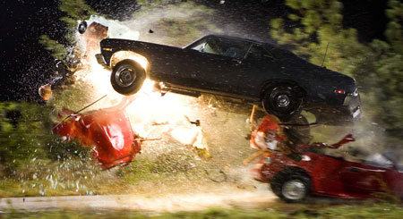 Today’s cinema adventure: Death Proof, writer/director Quentin Tarantino’s 2007 homage to the cheap exploitation movies of the sixties and seventies, originally released as half of the Grindhouse double feature (paired with Richard Rodriguez’ Planet Terror). With his trademark style on full display, Tarantino sets out to emulate- and surpass- the violent and titillating “anti-classics” he clearly loves with this tale of a psychopathic ex-stunt driver who stalks and kills young women in his souped-up, “death-proofed” muscle car. Though Kurt Russell delivers a delightful performance in the central role, and the director’s impressive visual style is as dazzling as ever, the film is ultimately sabotaged by several factors. First of all, with its conceit of recreating the genre which inspired it, Death Proof severely impairs its own ability to engage the viewer in its proceedings: the deliberately grainy cinematography, scratched film and bad splicing constantly serve as a reminder that it’s all just an elaborate gimmick; the inherently shallow formula prevents the far-fetched and sensationalistic plotline from ever becoming believable or compelling; and the characters, for all the self-consciously clever dialogue Tarantino puts in their mouths, are doomed to remain one-dimensional ciphers who exist merely to enact the filmmaker’s cars-sex-drugs-and-rock-n-roll fantasy. All these criticisms, of course, could easily serve as a description of any of the B-movies upon which Tarantino’s opus is based; and it would be correct to point out that what really matters in those films (and in this one) is the nail-biting, balls-to-the-wall action and the gratuitous violence for which everything else simply provides a framework. But where the original films managed, at their visceral best, to thrill and delight, transcending their shoddiness with their lack of pretense and their unapologetic devotion to providing guilty pleasure, Tarantino’s would-be tribute fails to achieve any of these ends. To be sure, his talent is clearly visible here: but that’s part of the problem, for where the drive-in fodder he emulates was often so bad it was good, here we have an obviously good filmmaker deliberately trying to be bad, and succeeding in just being, well, bad; and though the action sequences- two of them, to be exact- are unquestionably well-done, in order to get to them (thanks to Tarantino’s self-indulgent insistence on maintaining his own signature tension-building style) we have to sit through interminable stretches of hip, foul-mouthed dialogue, which may be meant to invest us in the characters but instead results in repeated glancing at our watches. Seriously, there was never this much talking in Death Race 2000. Don’t get me wrong- I’m not criticizing Tarantino for embracing and championing the grindhouse genre. After all, these humble movies are touchstones for a generation and have had a major influence on contemporary cinema; and in his best work (such as the Kill Bill movies and Inglorious Basterds), the director has masterfully drawn inspiration from them while incorporating their elements into his larger personal vision. With Death Proof, however, he has only succeeded in making a pale shadow of the original works, which, like a replica of some crude masterpiece of outsider art, seems pointless and unnecessary.