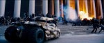 As for the new blood, obviously there are a few that deserve mention. Topping that list is Anne Hathaway, portraying Selina Kyle, an audacious cat burgler whose gear and manner make it clear that she represents another iconic Batman personality- though the name “Catwoman” is never used. She nails the character, with just the right blend of saucy seductiveness and dangerous unpredictability, matching Bale’s Bruce Wayne in a way that no previous female character has done- a significant point, and one which highlights the importance of her key role in the film, as well as the timing of her appearance in his life. It would be improper to give anything away, but it’s safe to say that she- and Nolan- bring a number of surprises to the table in their re-interpretation of this feisty, feline female. Tom Hardy, the English heartthrob who gained 30 lbs. to portray the hulking Bane, provides an awe-inspiring physical presence and clearly conveys the disarming intelligence of his character- the trilogy’s closest thing to a “super-villain.” He manages to give the character depth and even a degree of sympathy with his performance- not just through his voice, but in his physicality and, most importantly, with his eyes, which are left visible by the cruelly sadomasochistic mask he wears in all but one key scene of the film. Marion Cotillard brings an elegant nobility to the proceedings as Miranda Tate, a wealthy board member of Wayne Enterprises whose dedication to an environmentally-friendly project plays an important role in the developments of the plot, and leads to a relationship with Wayne that becomes closer than he expects. Finally, Joseph Gordon-Levitt portrays John Blake, an earnest young policeman whose personal belief in Batman leads him to deduce Wayne’s true identity and helps provide the impetus for him to return to the fight against evil; it’s a character that could very easily be too-good-to-be-true, but thanks to Gordon-Levitt he is more than believable, a welcome addition to the collection of loosely-affiliated heroes that aid Batman in his quest for law and order. A number of other actors make their first- and, presumably, last- appearance in Nolan’s vision of the Batman legend, including Matthew Modine as Gordon’s ambivalent second-in-command, and Willam Devane as the President of the United States; as with the old-timers, the new cast does a universally stellar job.