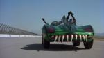 Despite this heavy-sounding sociopolitical subtext, the primary reason for watching Death Race 2000 is the same today as it was 37 years ago: it’s a hoot. Director Bartel brings his brand of dry whackiness to the table here, making the most of the story’s frequently ludicrous conceits with tongue-in-cheek self-parody; we don’t have to take the movie seriously because he reminds us throughout that it doesn’t take itself that way, allowing us to shut down our brains and just enjoy the absurdities onscreen. As for all that gratuitous nudity and violence, it certainly is gratuitous- and gleefully so; the movie revels in its tawdriness, delivering glossy, seventies-flavored sex and gore as often as possible without any attempt to justify it. The bloody parts, in particular, are highlighted with great delight, and they are somehow all the more satisfying for being so clearly fake; indeed, most of the carnage borders on slapstick comedy, and the truly graphic stuff is so fleeting you can miss it if you blink- because if it lasted any longer the bargain-basement trickery being employed would be even more obvious than it is already. It’s just more of the ridiculousness that gives the movie its deliberately mindless appeal; and it probably goes without saying that, by today’s standards, what we see in Death Race 2000 is pretty tame. At any rate, what 1975 critics found objectionable seems today like a pretty good recommendation for the film.
