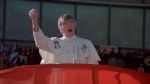 Wanting to capitalize on the publicity surrounding the then-upcoming film Rollerball, Corman found suitable source material in a short story, by sometime colleague Ib Melchior (who has a fascinating history in his own right, which you can read about here), called The Racer. Adapted into a screenplay by Robert Thom, then rewritten by Charles Griffith at the insistence of director Bartel, it visualizes a not-too-distant future in which America has been devastated by economic collapse and is under the control of an Orwellian regime (headed by a smarmy figure known simply as “Mr. President”), possessing the combined authority of church, state and media, and dedicated to a policy of “minority privilege.” Sponsored by the government is a yearly cross-country race in which contestants- paired with “navigators” who are apparently also designated sex partners- not only vie to be first across the finish line, but are awarded points for killing hapless pedestrians. Televised and spun for mass consumption, this ritualistic slaughter is further complicated by the interference of a group of rebels bent on sabotaging the proceedings and kidnapping the star driver, a mythic figure known as Frankenstein, whose survival of previous races has left him half-man/half-machine- or at least, according to his P.R.